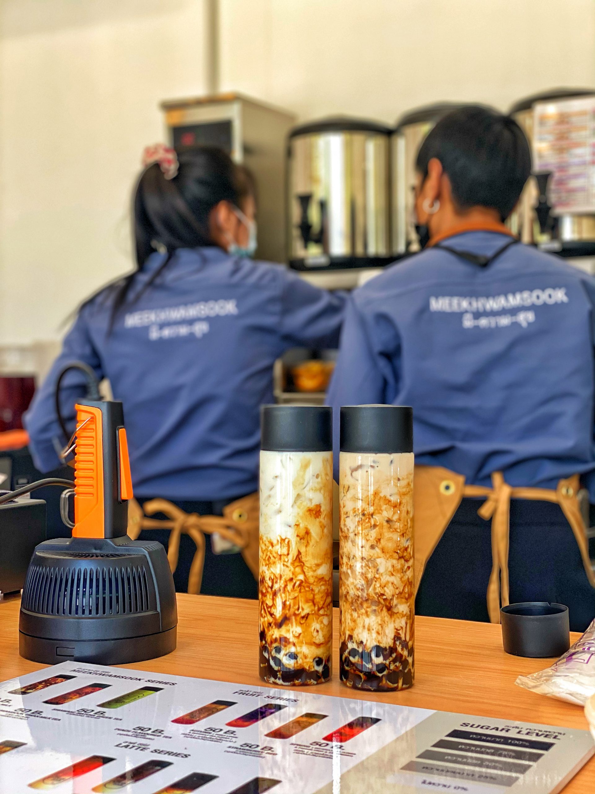 ร้านมีความสุข ชานมไข่มุก Me khwam sook bottle milk