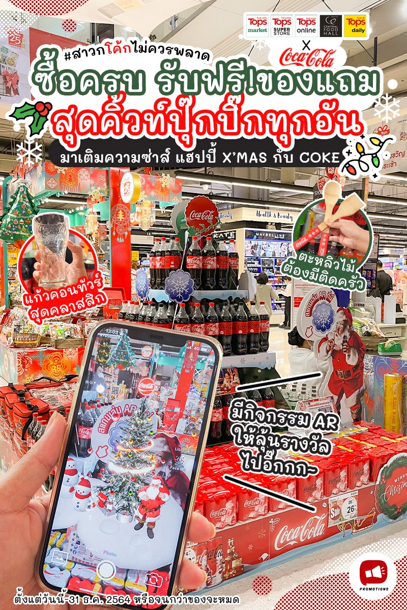 โฮะ โฮ่ โฮ่ แฮปปี้ X’MAS #สาวกโค้กไม่ควรพลาด ซื้อครบ รับฟรี! ของแถมสุดคิ้วท์ ปุ๊กปิ๊กทุกอัน จากโคคา-โคล่า ที่ท็อปส์ ทุกสาขา!
